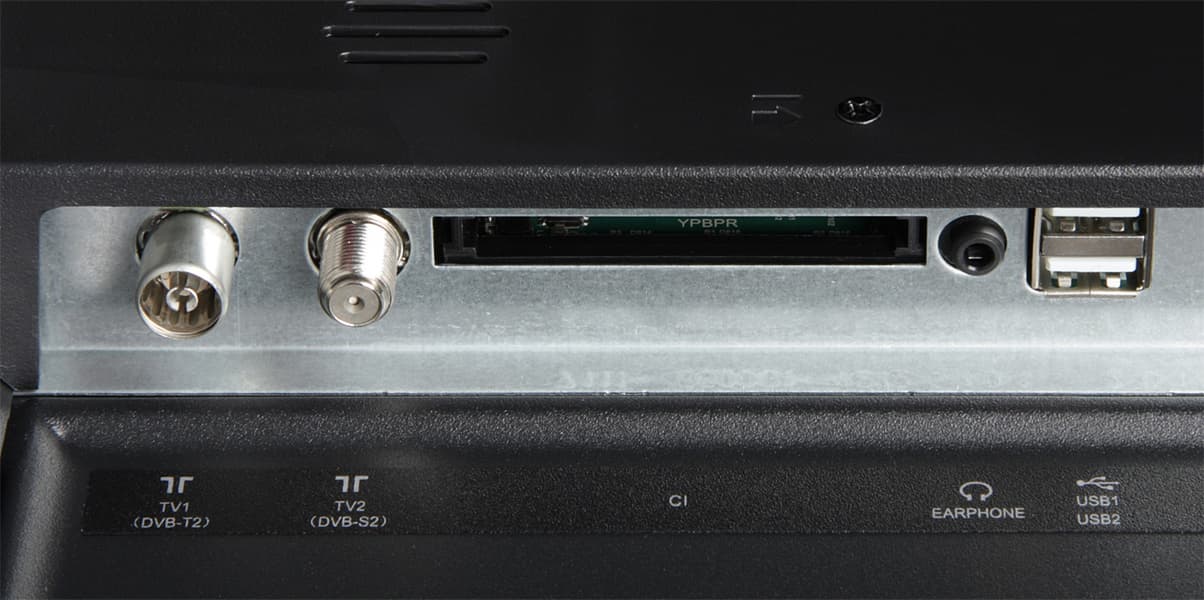 | TV1 | антенный вход, аналоговый и цифровой (DVB-T, DVB-T2, DVB-C) ТВ-тюнеры (75 Ом, коаксиальный — IEC75) |