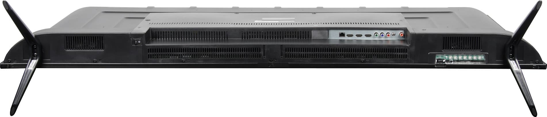 Монолитная рамка, обрамляющая экран, изготовлена из черного пластика с зеркально-гладкой поверхностью и без покрытия. Сзади телевизор выглядит достаточно аккуратно.