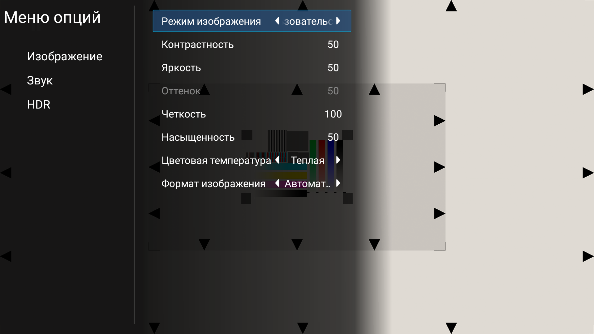Настроек, влияющих на яркостный и цветовой баланс совсем немного.