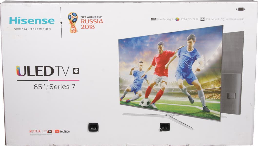Телевизор Hisense H65U7A имеет строгий дизайн с условно безрамочным экраном. К тому, как телевизор выводит сигнал 4К, можно придраться, но только с точки зрения использования в качестве компьютерного монитора, 4К-кино Hisense H65U7A показывает с высоким качеством. Далее списками: