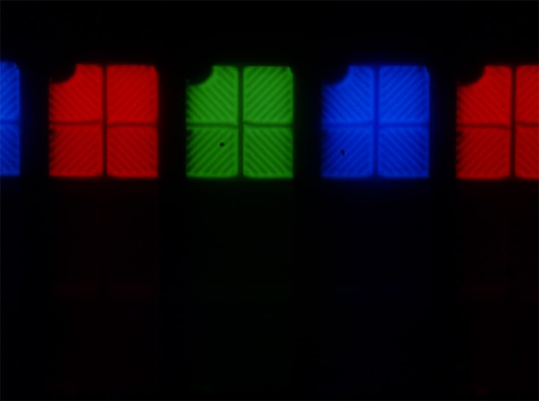 Видно, что спектры компонент хорошо разделены, что и позволяет получить относительно широкий цветовой охват.