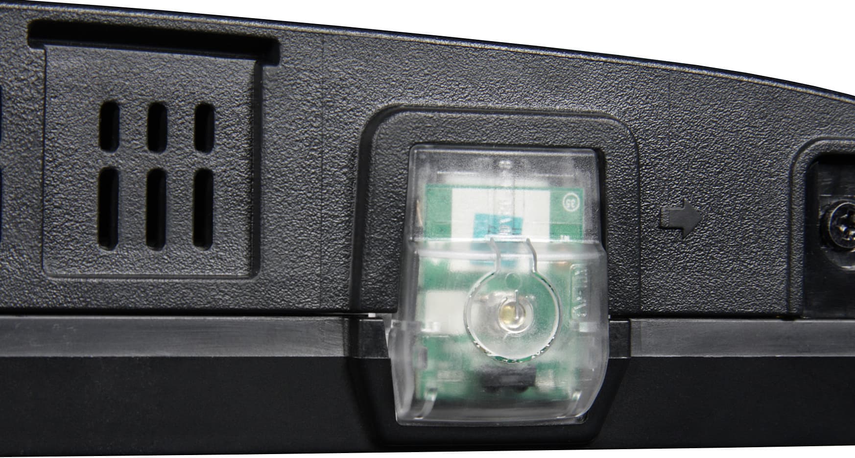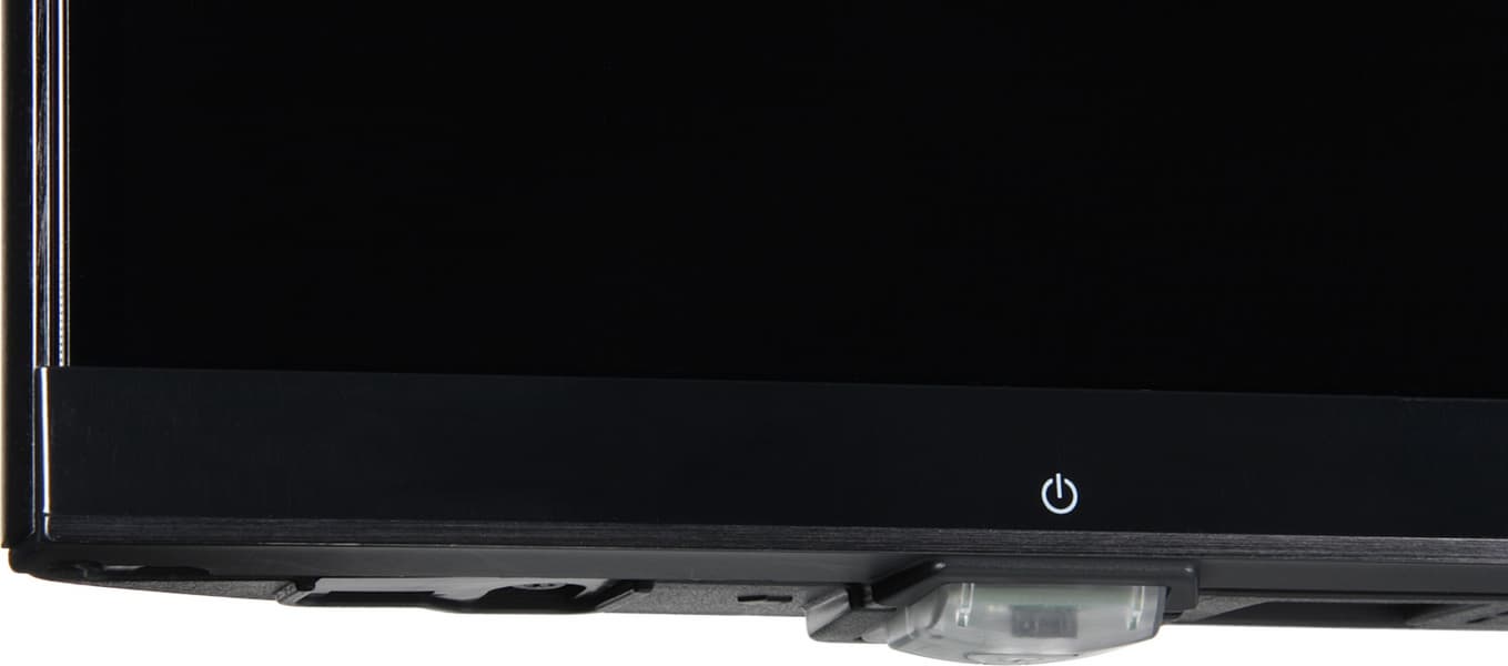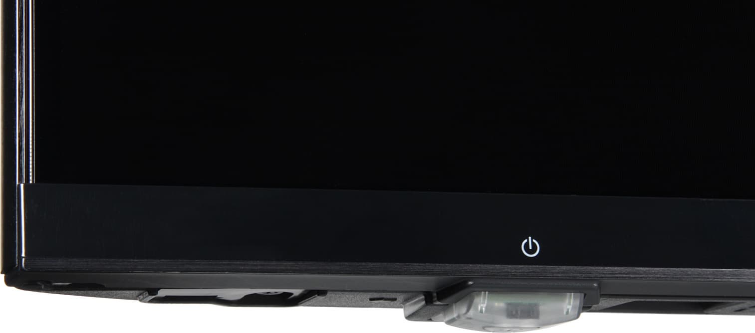 В ней размещены единственная механическая кнопка, с помощью которой можно включать-выключать телевизор и очень ограниченно им управлять без помощи пульта ДУ, ИК-приемник пульта ДУ и индикатор состояния. В дежурном режиме индикатор горит красным (можно отключить в меню установок), он не очень яркий. Спереди кнопка обозначена значком питания.