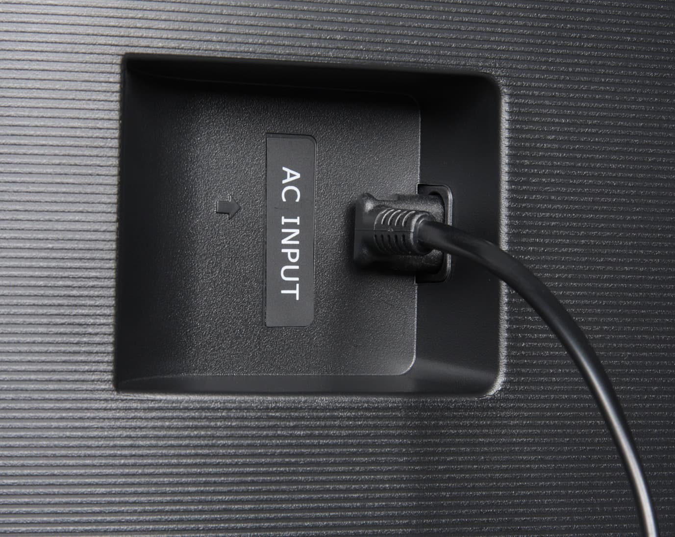 Комплектный кабель питания оснащен компактным Г-образным разъемом со стороны подключения к телевизору.