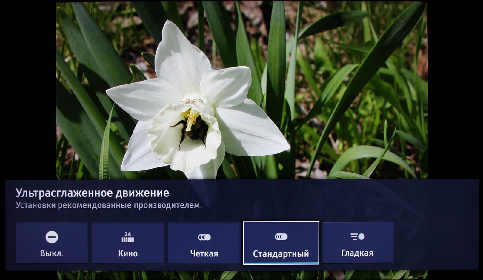 Редко, но попадались видеофайлы, которые телевизор не мог воспроизвести. Тестовые ролики на определение равномерности чередования кадров помогли выявить, что телевизор при воспроизведении видеофайлов подстраивает частоту обновления экрана под частоту кадров в видеофайле, но только на 50 или 60 Гц, поэтому файлы с 24 кадр/с воспроизводятся с чередованием длительности кадров 2:3. Впрочем, в настройках для параметра Ультрасглаженное движение можно выбрать вариант Кино, тогда кадры и файлов с 24 кадр/с будут выводится с одинаковой длительностью (и без вставки промежуточных кадров).