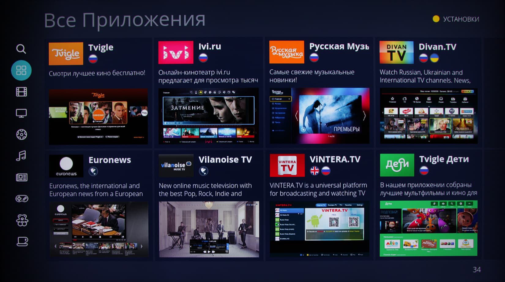 Выбор приложений не очень большой, особенно в сравнении с Android TV. На момент написания статьи их 217, а после фильтрации по признаку поддержки английского или русского языка остается всего 34 приложения.
