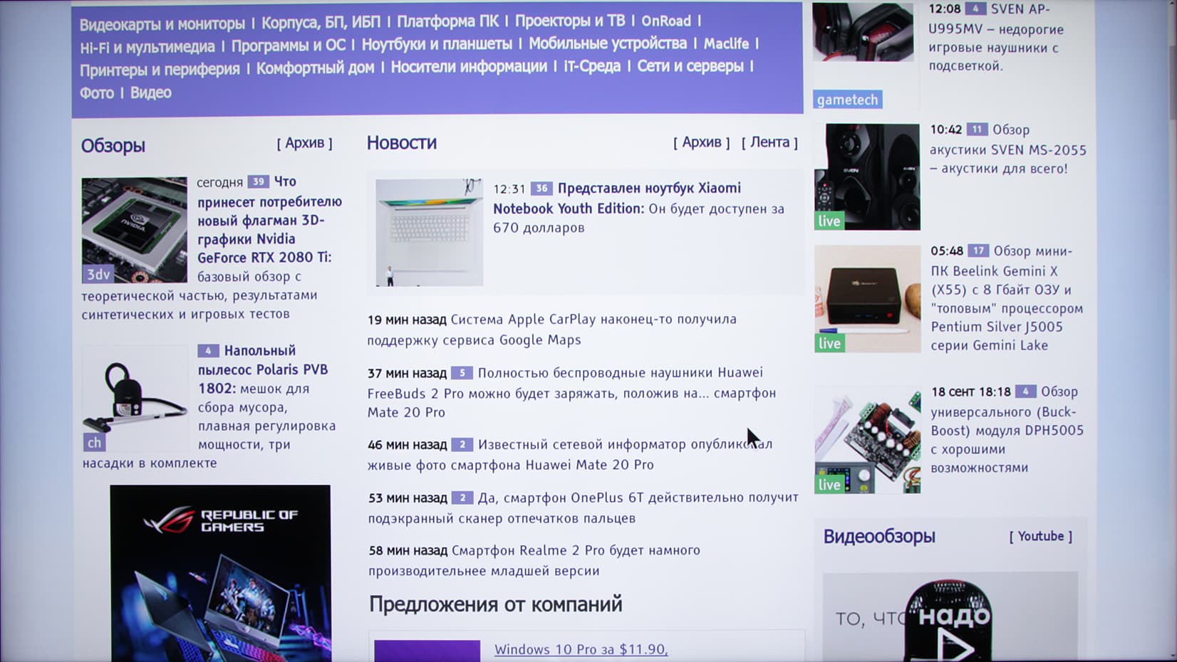 Встроенный мультимедийный плеер может выводить динамичное (видеофайлы) и статичное (растровые графические файлы) изображение в истинном разрешении 3840×2160. Все остальные программы выводят изображение в лучшем случае в разрешении 1920×1080, но, видимо, какие-то из них (тот же YouTube) могут выводить видео в истинном разрешении 3840×2160, используя средства аппаратного декодирования.