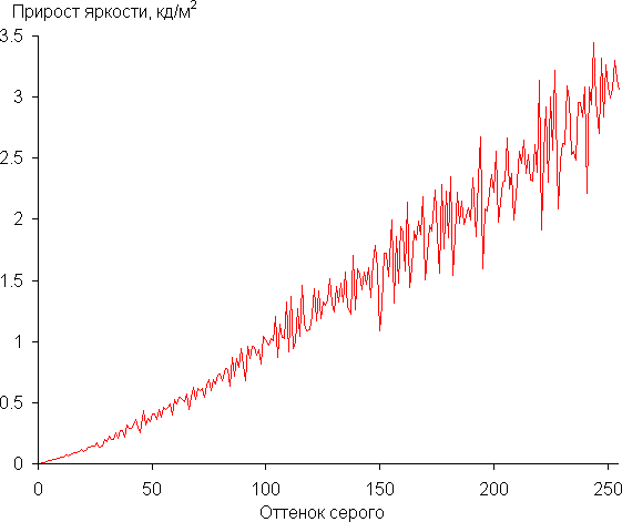 График ниже показывает прирост (не абсолютное значение!) яркости между соседними полутонами: