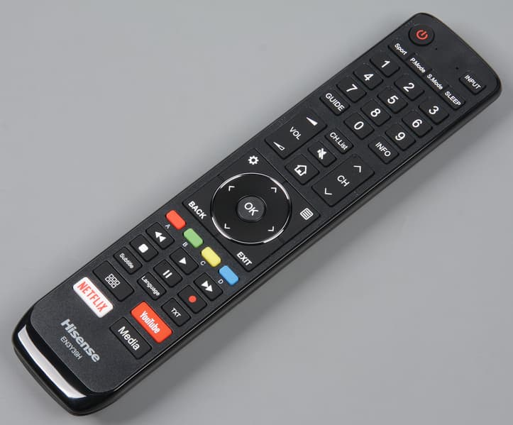 Корпус пульта изготовлен из черного пластика в основном с матовой поверхностью. Обозначения большинства кнопок достаточно крупные и контрастные. Самих кнопок много, пожалуй, даже слишком много, но, как показывает практика, пользоваться такими пультами все равно удобнее, чем лаконичными, с парой-другой кнопок. Отметим выделенные кнопки для запуска приложений Netflix, YouTube и встроенного мультимедийного плеера. Работает пульт по ИК-каналу. Функции координатного ввода, например гироскопической мыши, у штатного пульта нет. Ограниченные в случае такого «умного» телевизора возможности пульта можно компенсировать, подключив к телевизору клавиатуру и мышь. Эти устройства ввода работают по USB даже через USB-разветвитель, освобождая дефицитные USB-порты под другие задачи. Мышь в интерфейсе самого ТВ не работает, курсор появляется интернет-браузере. Поддерживается прокрутка колесиком. Задержка перемещения курсора мыши относительно движения самой мышью большая, по факту пользоваться мышью почти невозможно. Для подключенной клавиатуры раскладка выбирается с помощью кнопки на экранной виртуальной клавиатуре, что не очень удобно. Клавиатуру можно использовать при навигации по интерфейсу ТВ, а ввод с клавиатуры работает в интерфейсе самого ТВ (например, при вводе пароля) и, например, в интернет-браузере. К сожалению, например, в YouTube приходится использовать виртуальную экранную клавиатуру, что очень неудобно, но это претензия уже к разработчикам данного ПО. По Bluetooth не получилось подключить клавиатуру, но удалось подключить мышь и джойстик. Впрочем, пользы от этого мало, так как работоспособность мыши от этого не улучшилась, а найти программу, в которой заработал бы джойстик, не удалось. Нужно отметить, что в целом интерфейс хорошо оптимизирован для использования только комплектного пульта ДУ, то есть подключать клавиатуру и мышь в общем-то, необязательно.