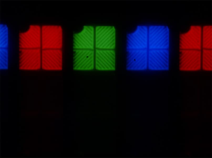 Аппаратные измерения показали, что контрастность очень высокая, равномерность белого поля хорошая, а равномерность черного, и как следствие контрастности немного ниже. На черном поле можно заметить некоторую вариацию засветки по площади экрана: