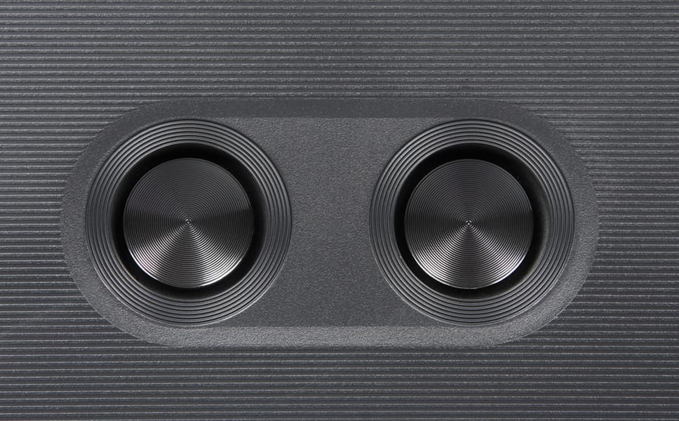 Громкость встроенной акустической системы для типичной по размерам жилой комнаты можно считать достаточной. Присутствуют высокие и средние частоты, низких частот немного. Стереофонический эффект выражен. Звук был бы отличным, но его портят паразитные резонансы корпуса, поэтому общее качество в лучшем случае чуть выше среднего для этого класса техники. По возможности стоит подключить к телевизору внешнюю акустику.
