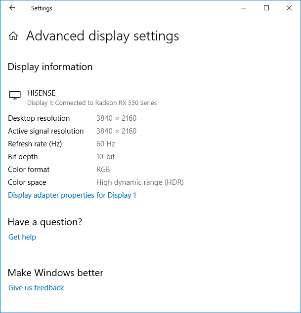 Или, например, при воспроизведении в видеоплеере в полноэкранном режиме с помощью видеорендерера madVR независимо от настроек ОС. Воспроизведение тестовых видеороликов с 10-битным цветом и плавными градиентами показало, что их вывод в режиме HDR отличается от вывода в режиме с глубиной 8 бит на цвет, но все же переходы между оттенками заметнее, чем в случае настоящего 10-битного вывода. Тестовые HDR-видеоролики с реальными изображениями по субъективным ощущениям выводились с очень хорошим качеством.