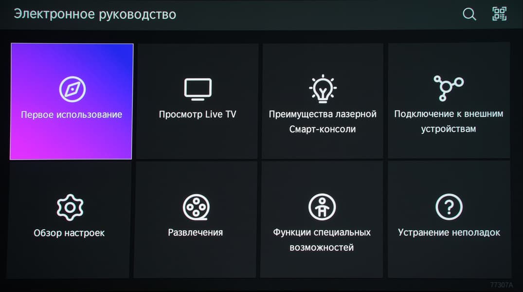 Отметим, что в целом к стабильности работы оболочки у нас никаких претензий не возникло. На команды с пульта проектор реагирует практически без задержки. К проектору прилагается напечатанное краткое руководство пользователя. Больше информации содержится во встроенной справке Электронное руководство, но и там пользователь может не найти ответы на некоторые вопросы, относящиеся именно к данной модели проектора.