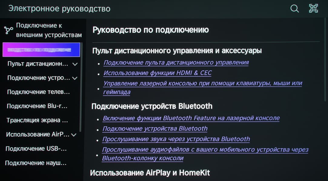Третий разъем HDMI поддерживает обратную передачу звука (eARC). Дополнительно к eARC и оптическому выходу звук на внешнее устройство можно передавать по Bluetooth. Для проверки мы успешно подключились к нашей тестовой беспроводной колонке. Сам проектор наоборот можно использовать как внешнюю аудиосистему, подключаемую по Bluetooth, например, к смартфону или планшету, при этом во время воспроизведения источник света в проекторе можно отключить или установить динамичное или статичное фоновое изображение.