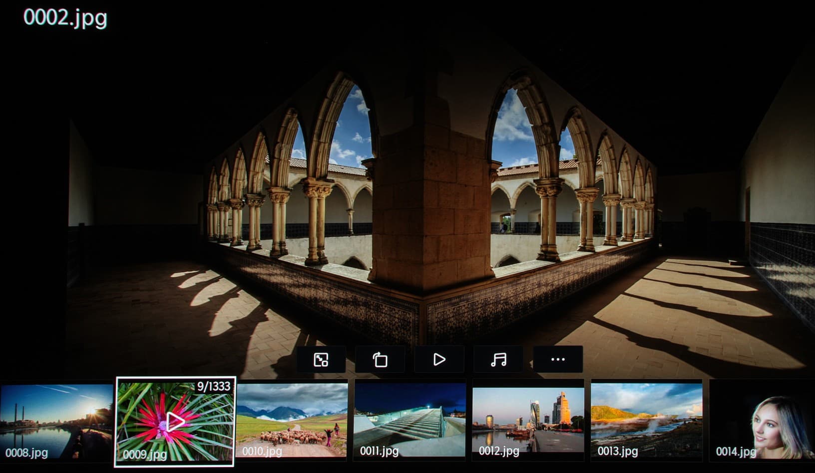 Нами подтверждена способность проектора показывать растровые графические файлы в форматах JPEG, GIF, BMP и PNG, в том числе в виде слайд-шоу под фоновую музыку (но сначала из аудиофайлов нужно создать список воспроизведения) с выбранным или случайным эффектом перехода. Изображения JPEG и PNG размером 3840×2160 пикселей выводятся один к одному по пикселям условно в истинном разрешении 4К, но с небольшим снижением четкости, что обусловлено способом формирования изображения в этом проекторе.