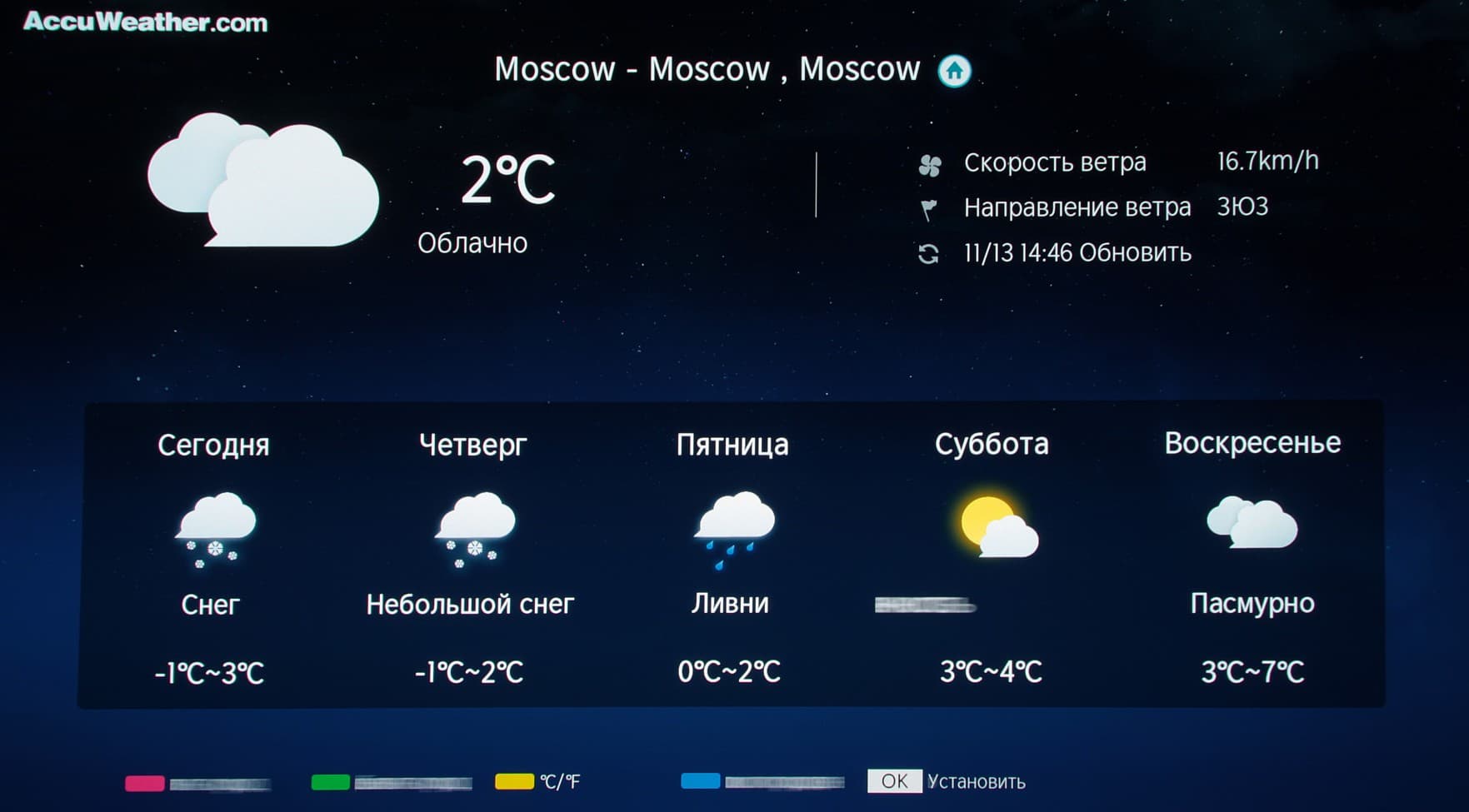 Есть функция вставки промежуточных кадров. Ее качество отличное. В большинстве случаев промежуточные кадры рассчитываются правильно с небольшим количеством малозаметных артефактов и с высокой четкостью. «Желе» вокруг объектов в движении выражено слабо, в случае быстрых и сложных движений заднего фона он сохраняет хорошую детализацию. Вставка кадров работает для частот кадров от 24 до 50 Гц и до разрешения 4К включительно. Пользователь может настроить работу этой функции под свои требования, или, разумеется, отключить ее совсем для просмотра кино без вмешательства умной электроники.