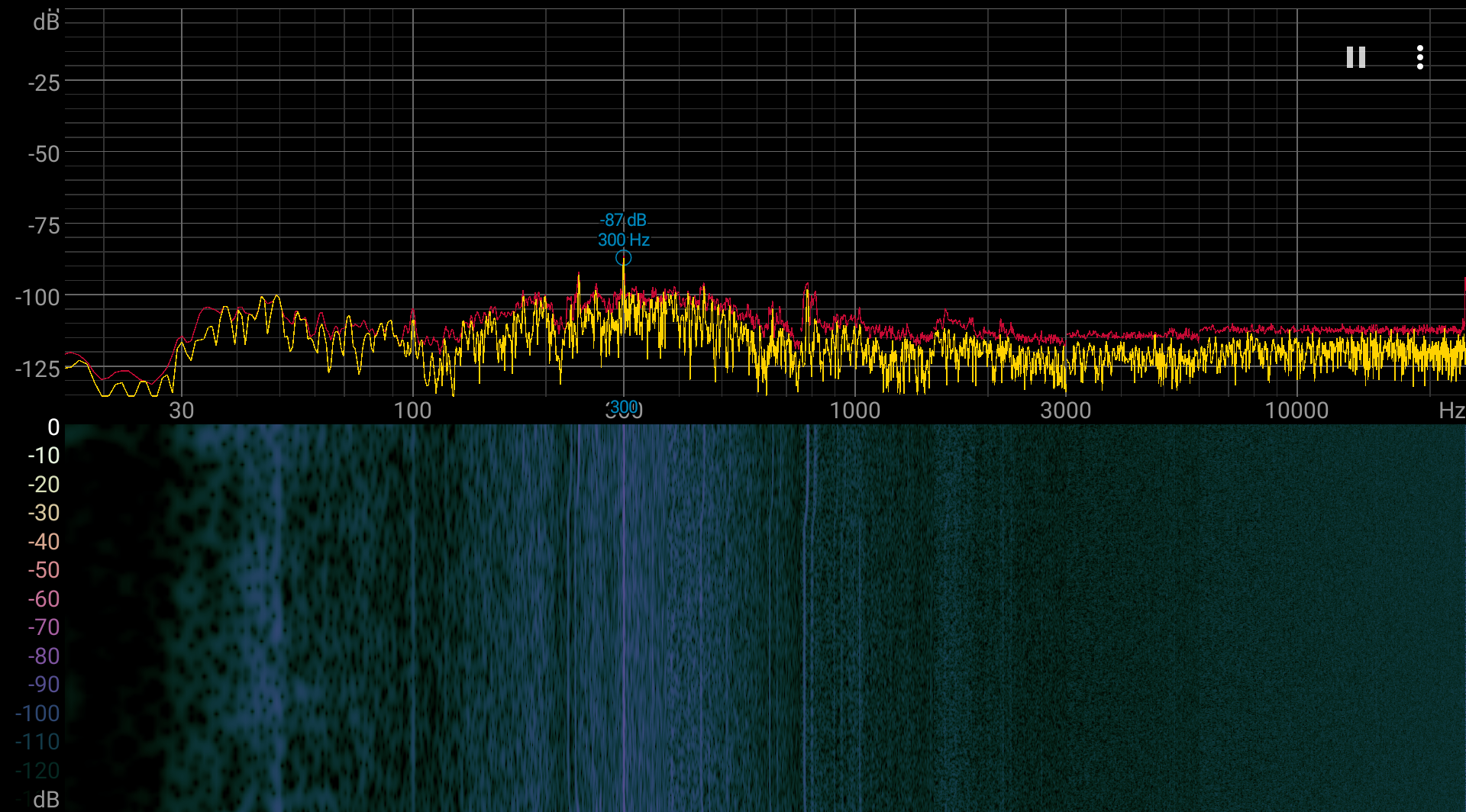 При отключении увеличения разрешения до 4К пропадает гудящий призвук, и, соответственно, исчезает пик на 300 Гц: