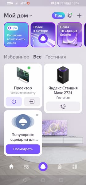 Управление может происходить с помощью виртуального пульта с ограниченной функциональностью, а также с помощью голосовых команд, отдаваемых Алисе.