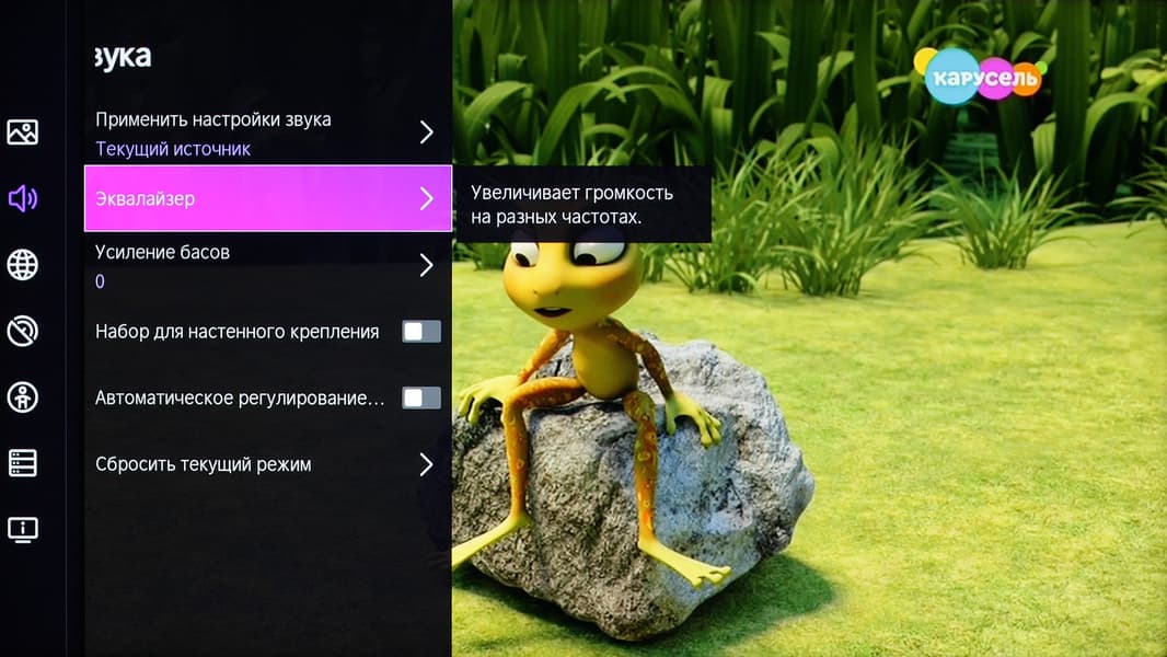 Меню с настройками ТВ достаточно крупное, надписи в нем читаемые.