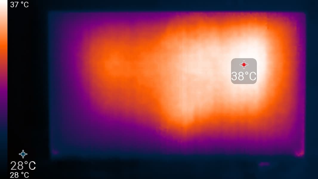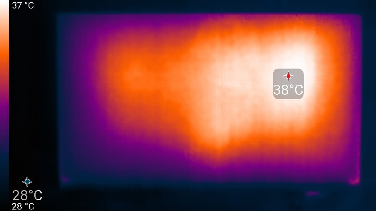 Нагрев умеренный, он выше условно по центру, что согласуется с типом подсветки.