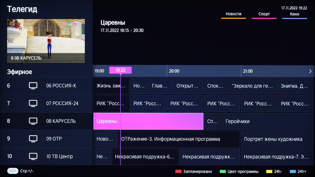 Есть хорошая поддержка электронной программы передач — можно посмотреть, что именно идет на текущем и других каналах, запрограммировать просмотр или запись программы или сериала и т. д.
