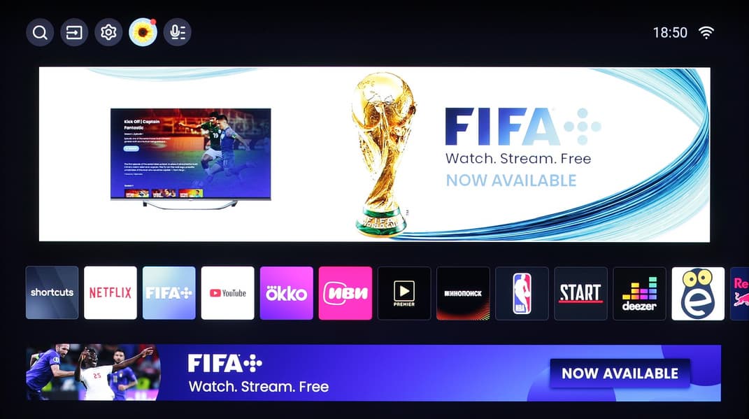 Акцент на приложении FIFA+ связан с тем, что компания Hisense является официальным спонсором чемпионата мира по футболу 2022 — FIFA World Cup Qatar 2022.