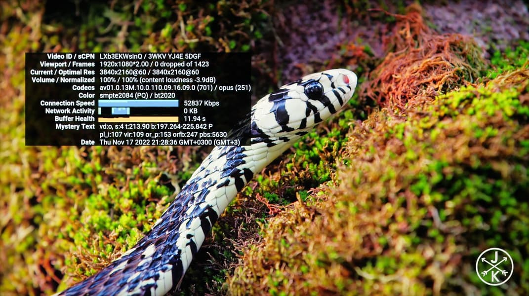 Максимальный битрейт видеофайлов, при котором еще не было артефактов, при воспроизведении с USB-носителей составил 300 Мбит/с (H.264/H.265, http://jell.yfish.us/), по Wi-Fi (сеть в диапазоне 5 ГГц) — 200 Мбит/с, по проводной сети Ethernet — 90 Мбит/с. В последних двух случаях использовался SMB-сервер роутера TP-Link Archer AX6000.