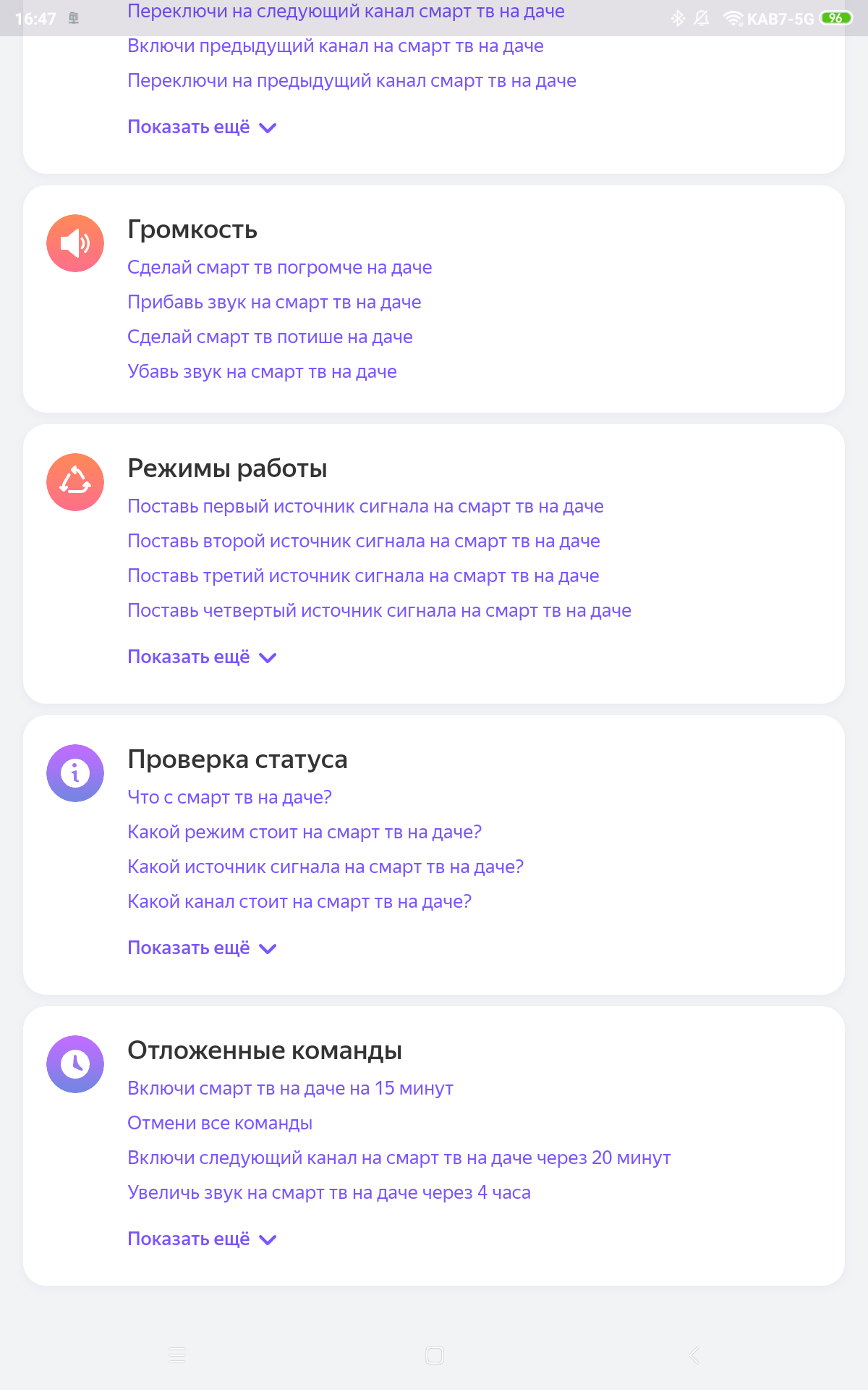 Этот помощник поможет найти контент, который предоставляют ряд программ (например, Okko и YouTube) и предложит поискать информацию в Интернете, хотя сказанная пользователем фраза может претерпеть некоторые изменения. Также помощник может самостоятельно ответить на какие-то вопросы, например, какая сейчас погода за окном.
