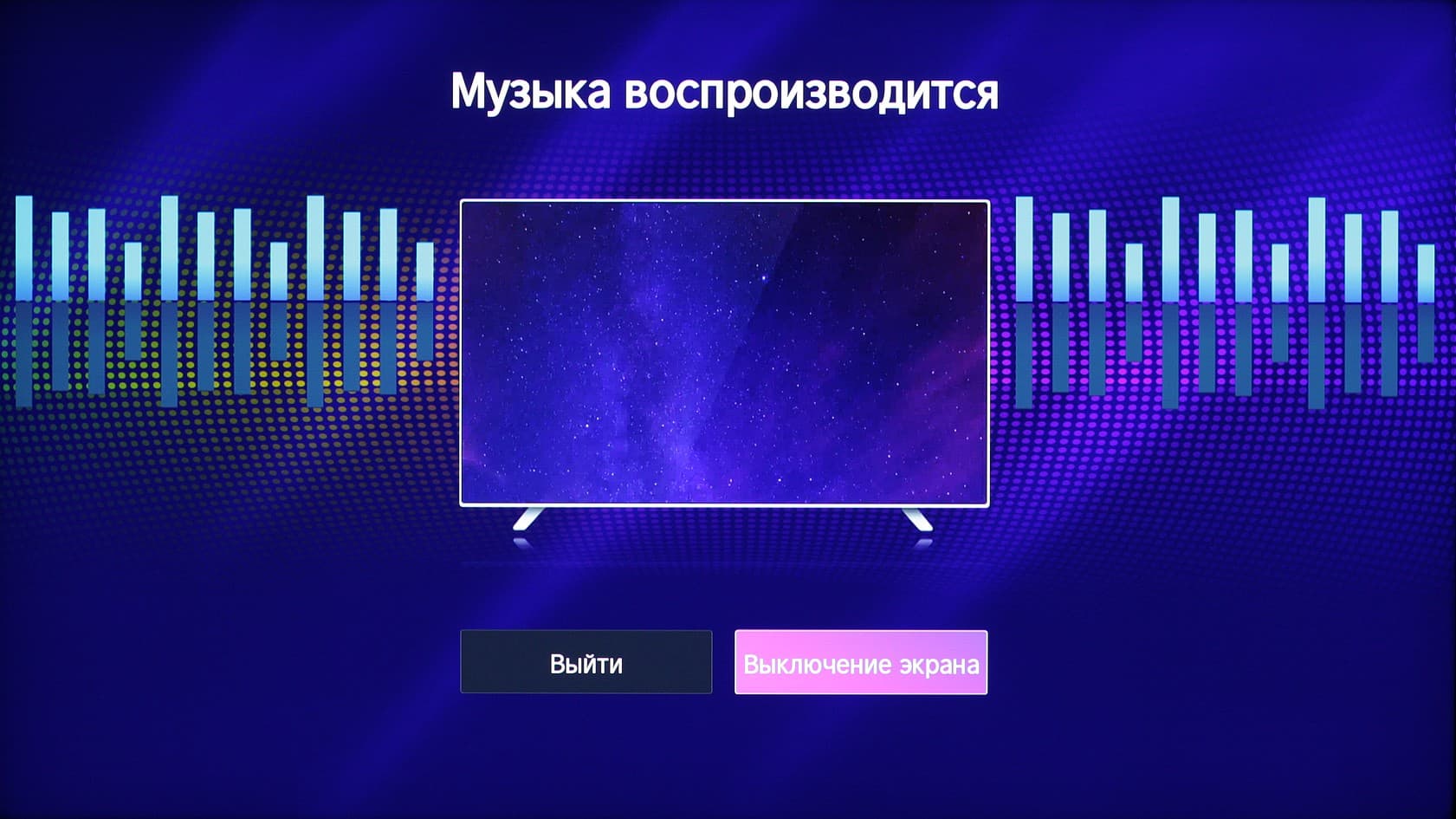 К телевизору по Bluetooth можно подключить внешнюю акустику или наушники, также удалось подключить мышь и клавиатуру, видимо, поддерживаются и джойстики. И наоборот, по Bluetooth на телевизор можно передавать звук, при этом телевизор включает динамическую заставку, а при желании экран телевизора можно выключить.