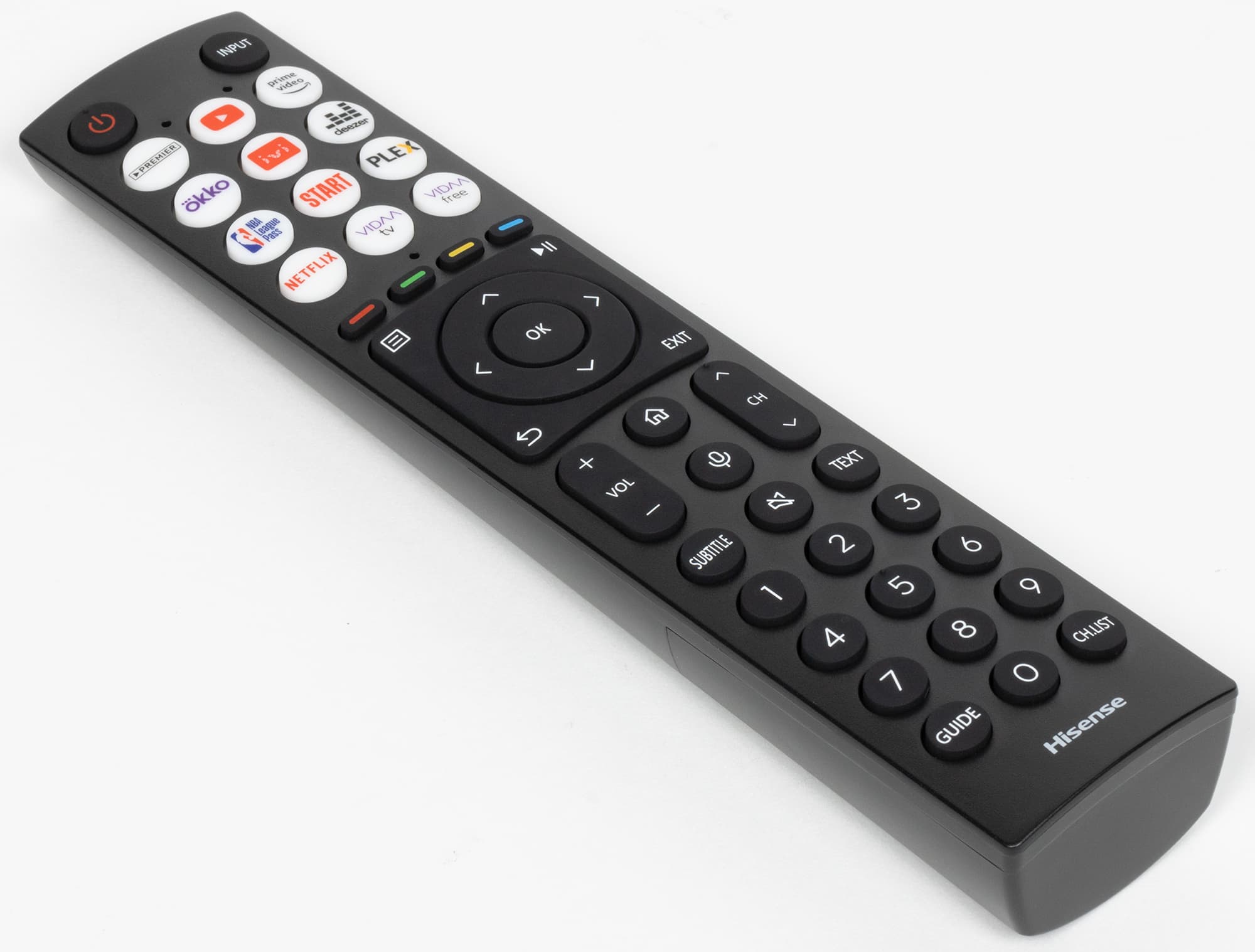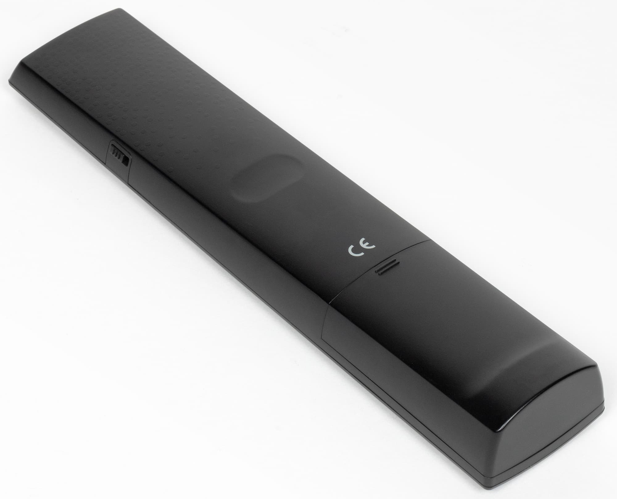 Пульт гибридный, он может работать как по ИК, так и по Bluetooth. По ИК пульт работает до сопряжения с телевизором или тогда, когда телевизор находится в глубоком сне. Во всех остальных случаях ИК-передатчик не работает, и команды передаются по Bluetooth. В передней части пульта есть три отверстия, за каким-то из них находится как минимум один микрофон. Сбоку есть движок, которым можно включить бесконтактное голосовое управление.