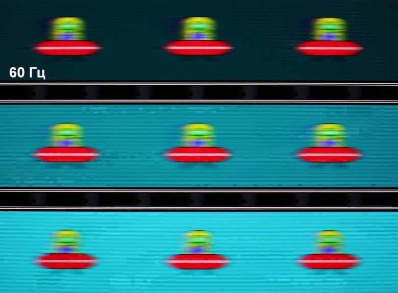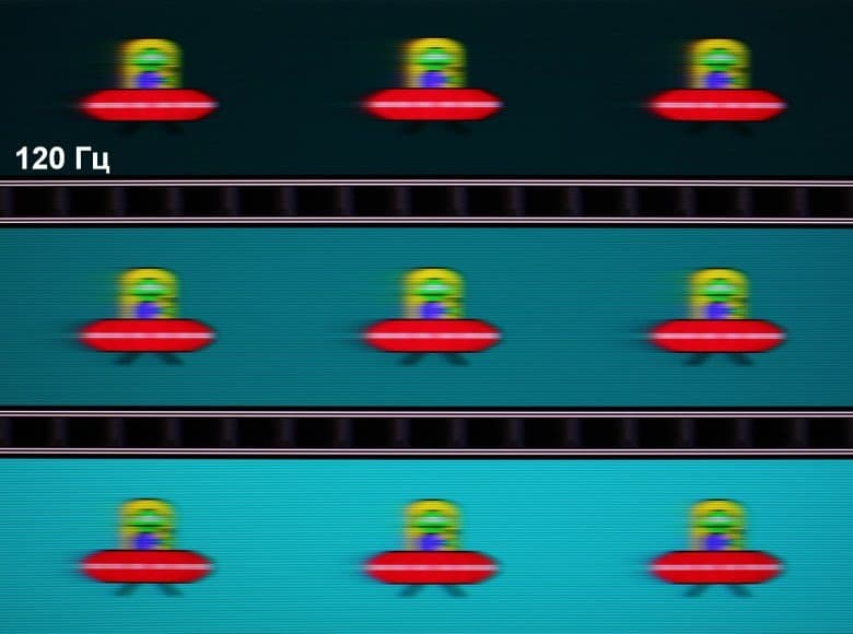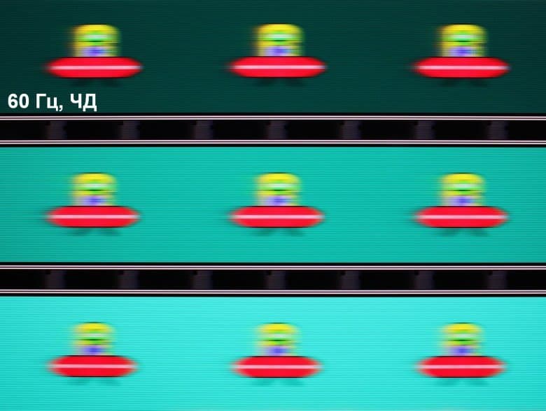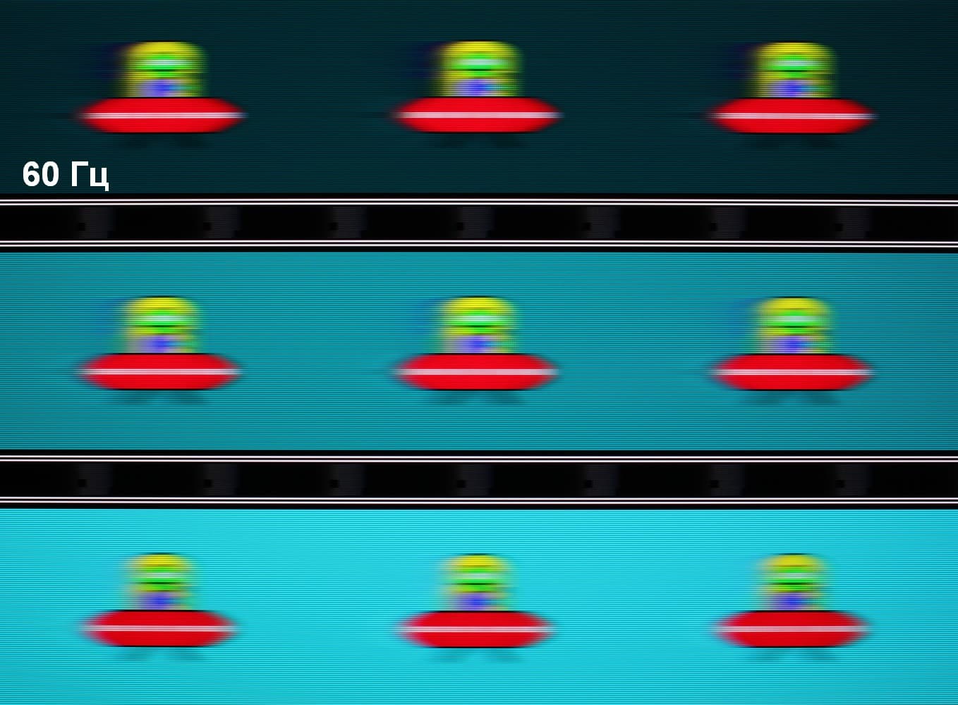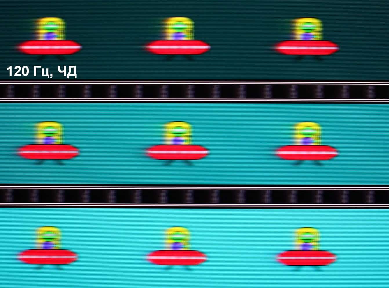 Видно, что при прочих равных условиях четкость изображения повышается по мере роста частоты обновления, а включение режима ЧД немного повышает четкость и снижает заметность артефактов, вызванные явно присутствующим небольшим разгоном матрицы.