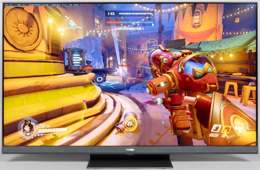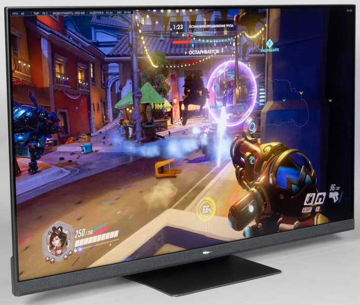 В этом телевизоре реализована поддержка технологии AMD FreeSync. Диапазон поддерживаемых частот, который указывается на панели настроек видеокарты, равен 48—120 Гц для режимов с кадровой частотой 120 Гц. Также телевизор может работать в режиме Nvidia G-Sync Compatible. В обоих случаях специальные тестовые утилиты подтвердили вывод без разрывов и с повышенной плавностью, хотя в случае G-Sync Compatible стабильность плавности явно ниже.