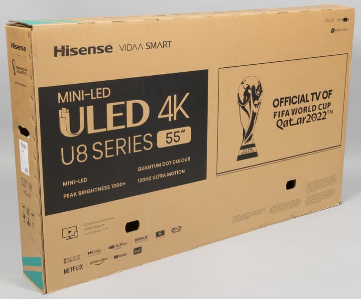 Телевизор Hisense 55U8HQ имеет строгий дизайн с условно безрамочным экраном и оригинально оформленной нижней планкой. В некоторых случаях преимуществом будет центральная подставка. Телевизор отличает высокое качество изображения, в том числе хорошая поддержка HDR, чему способствуют широкий цветовой охват и яркая прямая многозонная светодиодная подсветка. Плеер телевизора умеет воспроизводить множество форматов мультимедийных файлов, которые могут быть на USB-носителях или на серверах в сети. Функциональность телевизора расширена за счет предустановленных приложений, к которым можно добавить приложения из фирменного магазина. Игроки оценят поддержку технологии AMD FreeSync Premium, низкое значение задержки вывода и достаточно быструю матрицу, а также возможность работы с частотой обновления 120 Гц в разрешении 4K. Отдельно отметим возможность использования этого ТВ в качестве монитора при работе за ПК, так как диапазон регулировки яркости широкий, динамические режимы подстройки яркости можно отключить, снижения яркостной и цветовой четкости можно обойти, а видимого мерцания нет.
