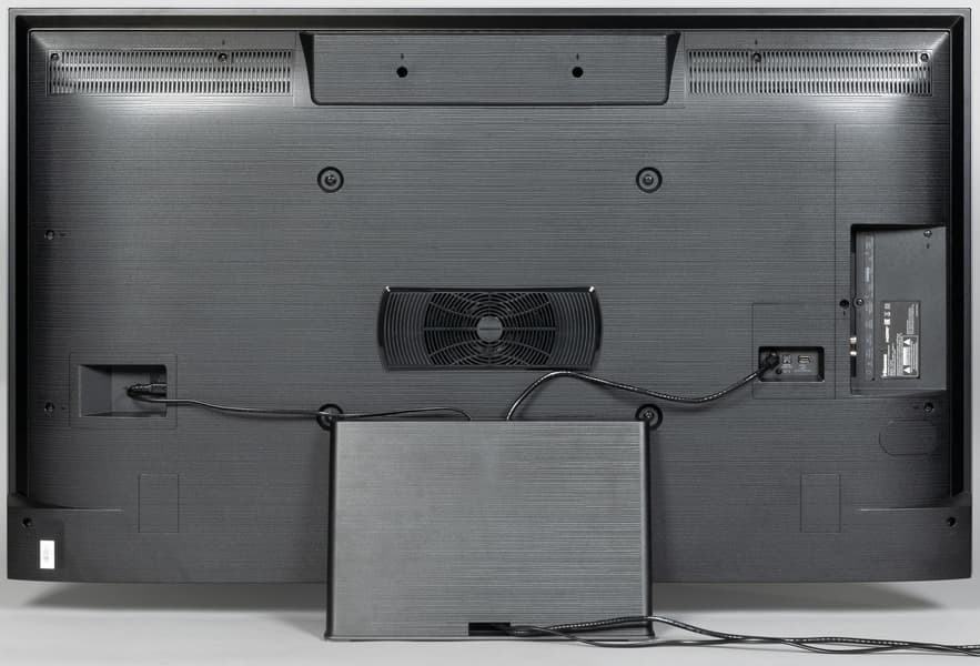 Задняя панель собственно модуля матрицы изготовлена из штампованного листа стали и ее не прикрытые кожухом области имеют черное матовое покрытие. Кожух, закрывающий большую часть задней панели, изготовлен из черного пластика с матовой поверхностью. Почти на всей площади кожуха есть рельефный узор в виде горизонтальных полосок. Кожух прикрывает электронные платы и громкоговорители. Разъемы размещены в трех нишах на кожухе. Часть разъемов направлена назад, часть вбок. На нижнем торце по центру есть накладка из прозрачного пластика, играющая роль световода.
