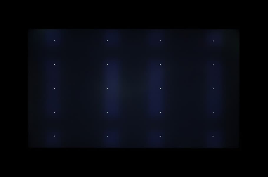 В этом телевизоре используется прямая многозонная светодиодная подсветка на Mini-LED, то есть на миниатюрных светодиодах. Впрочем, несмотря на размер светодиодов, самих зон относительно немного, а именно 112 (14 столбцов и 8 строк). Видимо, в одну зону освещает несколько светодиодов. Так как зон подсветки во много раз меньше, чем пикселей в матрице, то каждый светодиод освещает область из нескольких тысяч пикселей (из более чем 80 000 с учетом перекрестного засвечивания). Из-за этого на некоторых типах изображений могут быть артефакты в виде ореола вокруг или около ярких объектов. Например, в случае тестового изображения с белыми точками:
