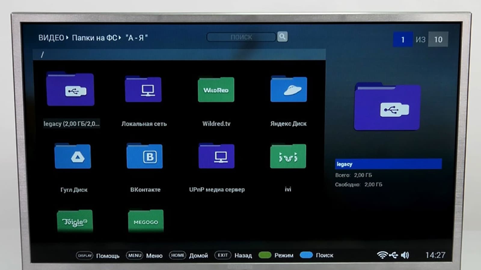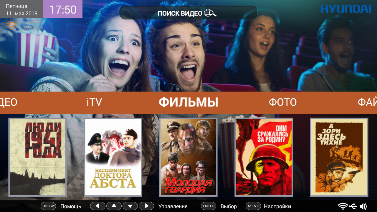 - Видео — воспроизведение видеофайлов и видеоконтента ряда сервисов (Wildred.TV, ivi, Tvigle и Megego)