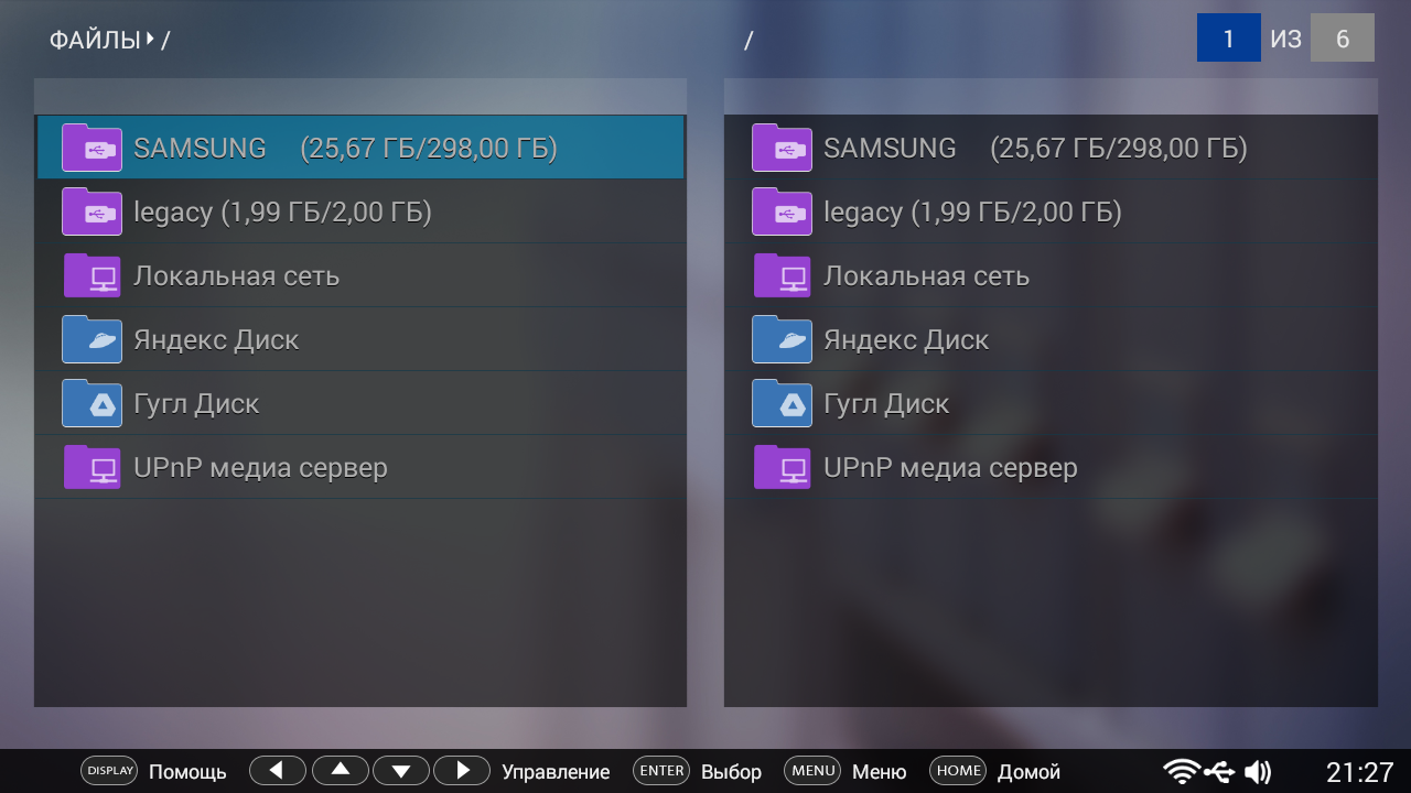Отметим, что источниками файлов и потоков могут быть подключенные по USB-накопители, встроенное хранилище размером 2 ГБ, общие папки в сети, Яндекс.Диск, Google Диск, ВКонтакте (видео) и серверы UPnP.