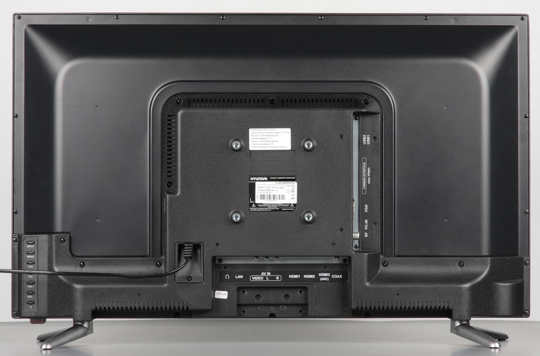 Сзади телевизор выглядит достаточно аккуратно.