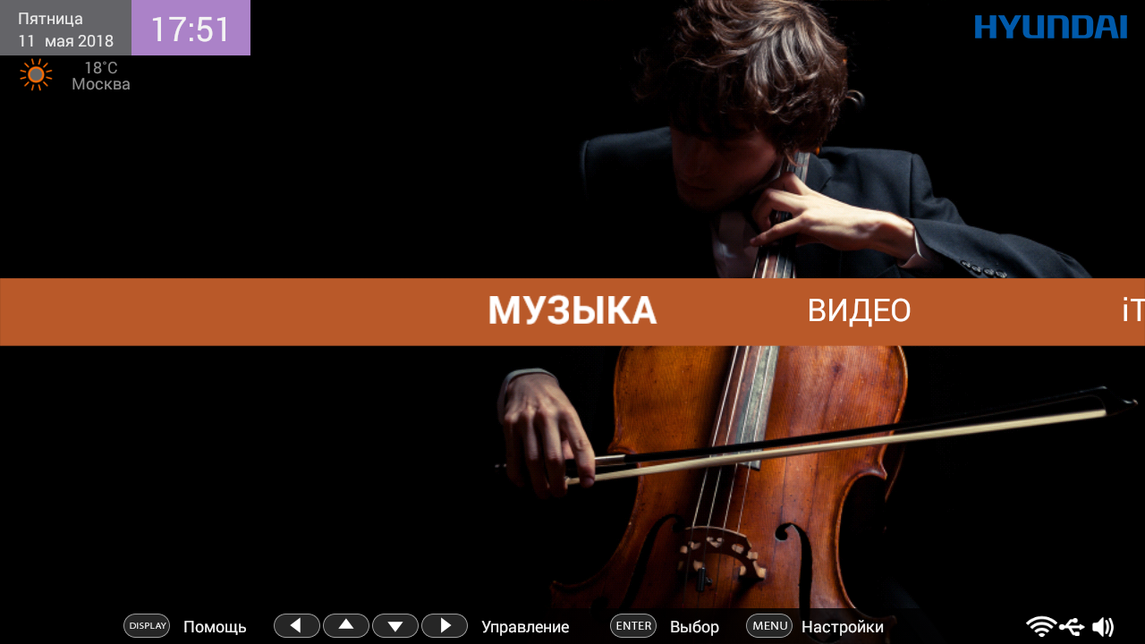 - Музыка — воспроизведение аудиофайлов и интернет-радио