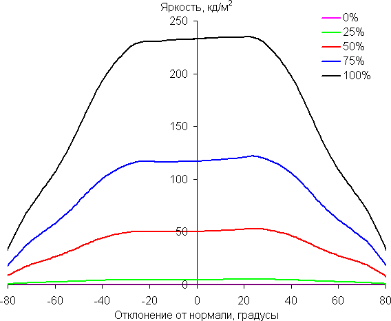 | Яркость белого поля | 211 кд/м² | −16 | 14 |
