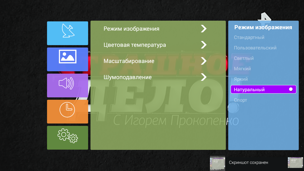 К сожалению, даже эти настройки доступны только для режимов показа эфирных/кабельных ТВ-программ и приема видеосигнала от внешних источников, для «умного» режима (воспроизведение мультимедийного контента) настроить ничего нельзя, нельзя даже отрегулировать яркость экрана. Настройки запоминаются для каждого источника видеосигнала.