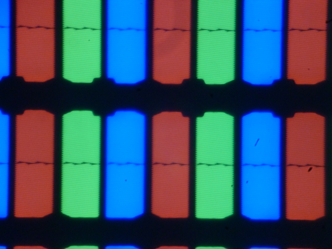 Выявленные характеристики экрана позволяют предположить, что в данном телевизоре установлена матрица типа IPS. Микрофотографии не противоречат этому (черные точки — это пыль на матрице фотоаппарата):