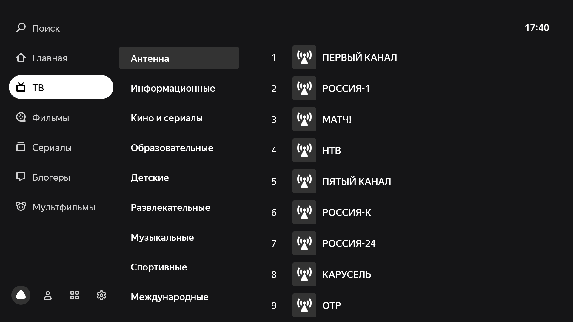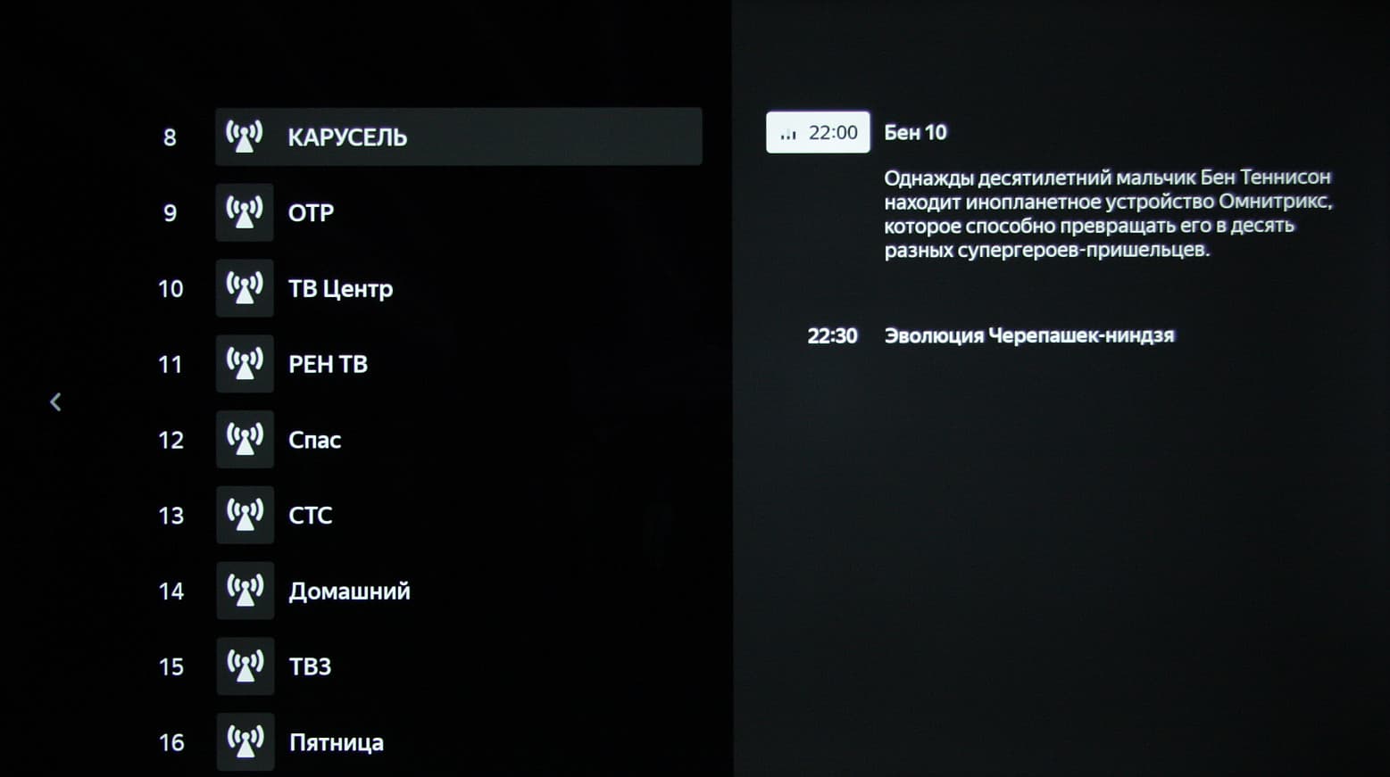 Она умеет переключаться на телевизионный канал по его названию, в том числе на эфирные каналы. Также Алиса может ответить на некоторые вопросы.