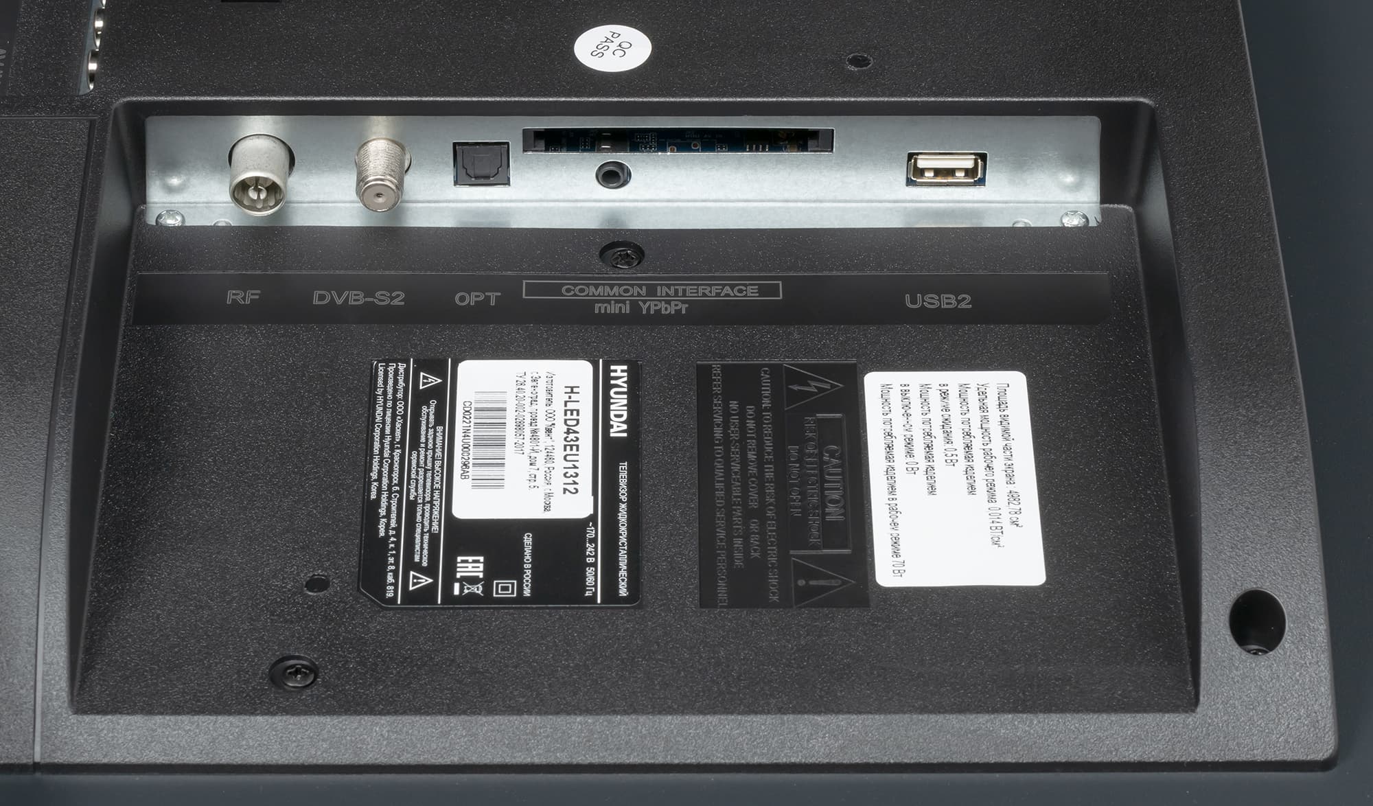 Таблица с характеристиками в начале статьи дает представление о коммуникационных возможностях телевизора. Большинство разъемов полноразмерные и размещены более-менее свободно. Исключением является разъем для ввода компонентного видеосигнала в аналоговом виде, который представляет собой гнездо для четырехконтактного миниджека. Соответствующий переходник на три RCA в комплект поставки не входит. Из всех возможных функций управления по HDMI работает только одна: подключенный по HDMI плеер выключается при выключении телевизора. К телевизору по Bluetooth можно подключить внешнюю акустику или наушники, а также мышь и клавиатуру.