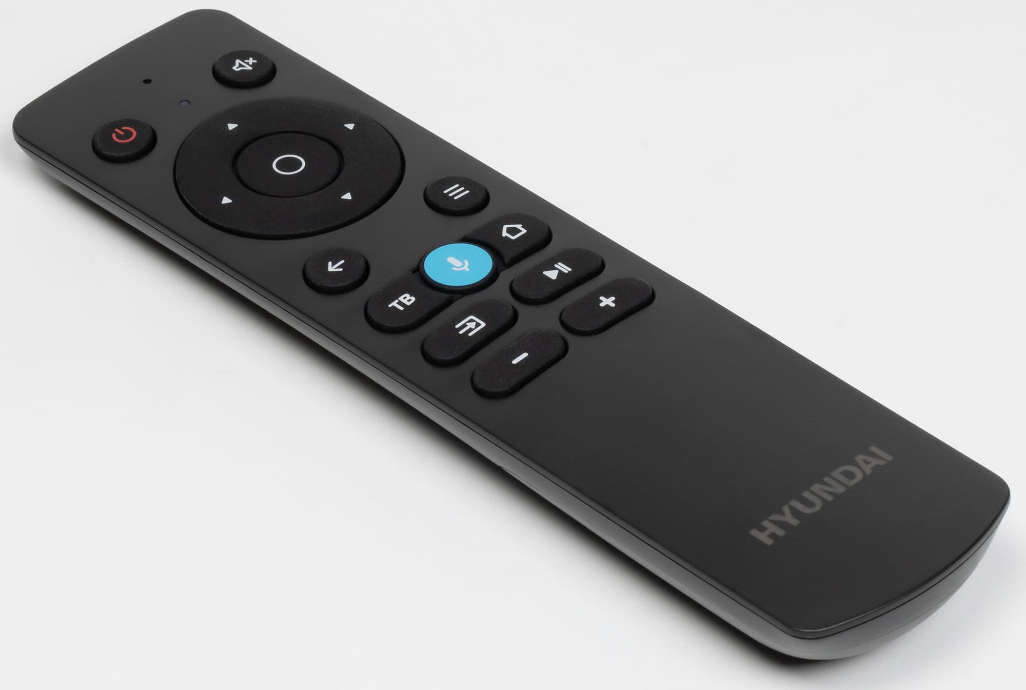 Корпус пульта изготовлен из черного пластика с матовой поверхностью. Обозначения кнопок достаточно контрастные и крупные. Самих кнопок немного, но организация интерфейса и не очень богатая функциональная оснащенность не дают особого повода сожалеть об отсутствии дополнительных кнопок. Пульт гибридный, он может работать как по ИК, так и по Bluetooth. Индикатор в передней части пульта мигает красным в первом случае и зеленым — во втором. По ИК пульт работает до сопряжения с телевизором или тогда, когда телевизор находится в режиме ожидания или в глубоком сне. Во всех остальных случаях ИК-передатчик не работает, и команды передаются по Bluetooth. В передней части пульта рядом с индикатором есть отверстие микрофона.