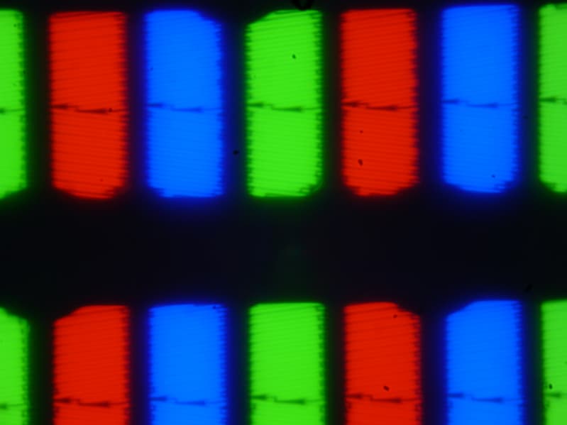 Субпиксели трех цветов (красного, зеленого и синего) поделены на две примерно равные по площади области с разной ориентацией доменов. Такое сложное устройство в принципе способно обеспечить хорошие углы обзора.