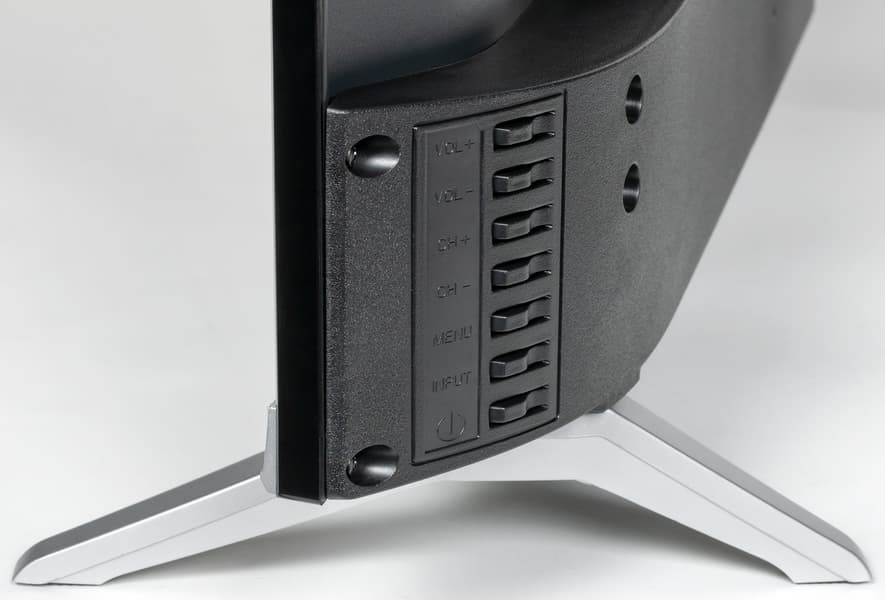 На кожухе сзади под правую руку есть семь механических кнопок, с помощью которых можно ограниченно управлять телевизором без пульта ДУ.