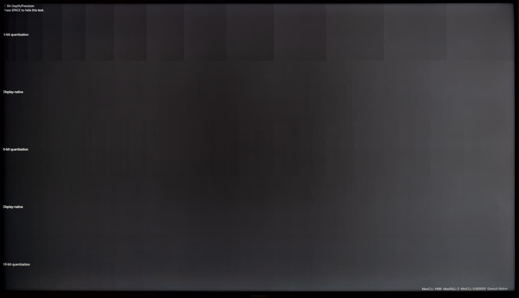 Качественную оценку мы начнем с демонстрации градиентов при выводе изображения в 8-битном и 10-битном режимах (программная эмуляция со стороны ТВ либо GPU в случае подключения к ПК/ноутбуку).