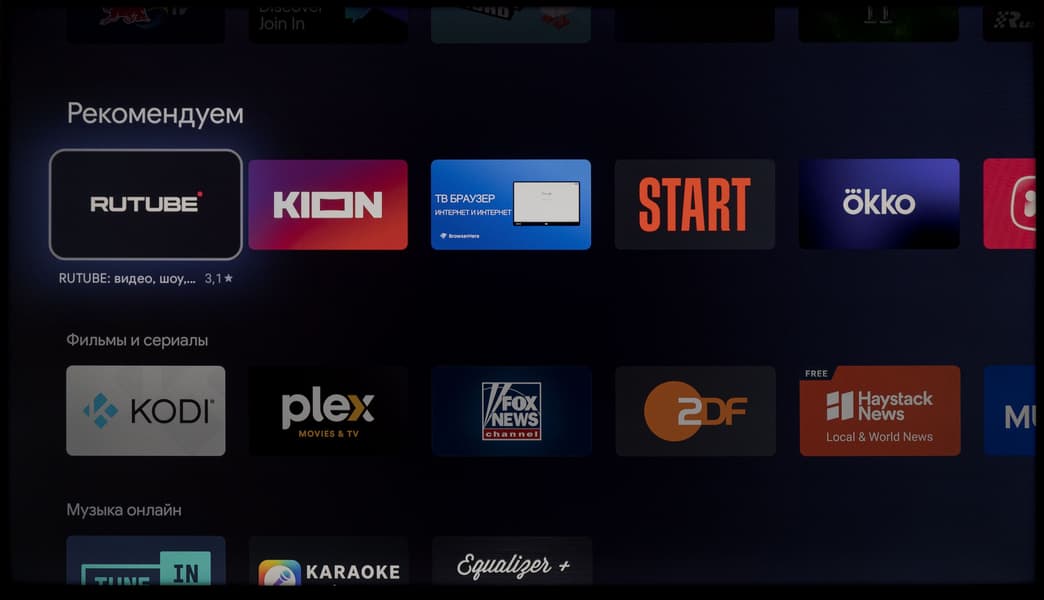 В телевизоре предустановлено достаточное количество приложений, часть из которых растеряла свою актуальность на территории РФ. Но уже хорошо известное нам приложение RuTV Link в котором можно быстро найти всё необходимое российское ПО (браузер Яндекс, различные стриминговые сервисы и онлайн-кинотеатры). Список приложений постоянно пополняется — обновления выходят часто.