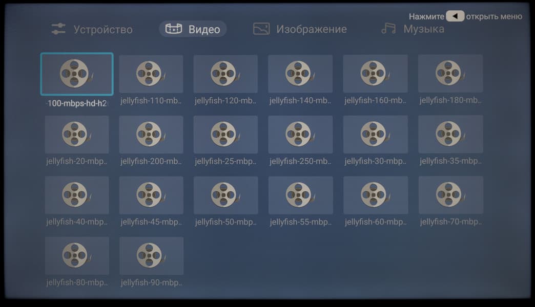 При тестировании воспроизведения мультимедийного контента мы ограничились рядом файлов, запускаемых в основном с внешних USB-носителей (флэш-накопитель объемом 64 ГБ с подключением USB 3.2 Gen1 и SSD-диск объемом 512 ГБ с тем же USB 3.2 Gen1). Источником мультимедийного контента также был DLNA-сервер, развернутый с помощью беспроводного маршрутизатора Keenetic Giga (KN-1011) c прошивкой версии 4.07 и подключенным в порт USB 3.0 скоростным твердотельным накопителем.