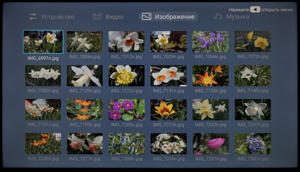 В вопросах воспроизведения изображений, нами подтверждена способность встроенного плеера телевизора показывать растровые графические файлы в форматах JPEG, GIF, PNG и BMP, в том числе в виде слайд-шоу.